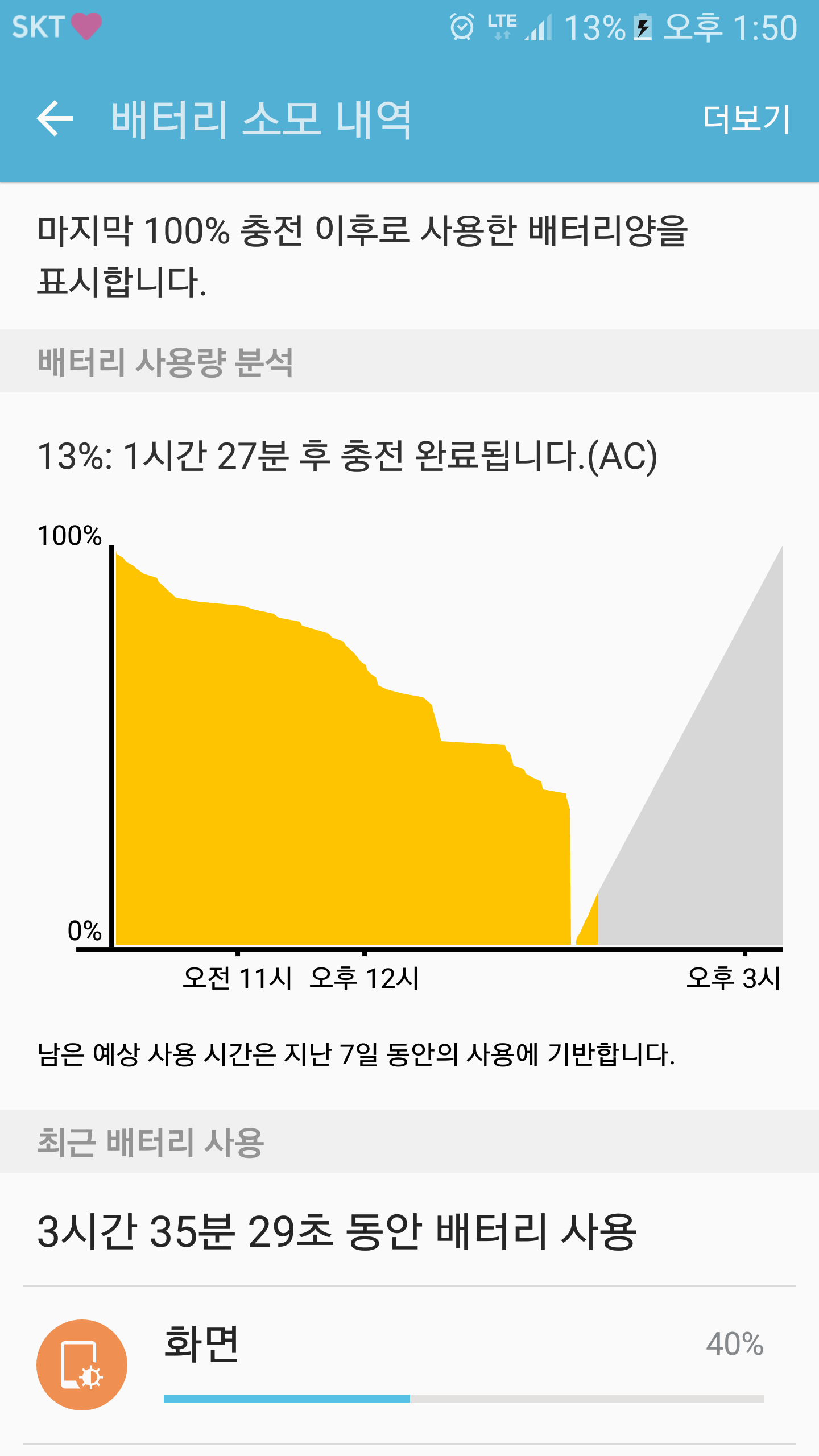 위의 이미지처럼 40~50프로대에서 방전되는 현상이있어서 서비스센터 방문했고