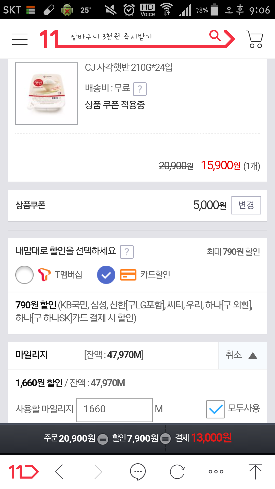 쿠폰도 먹고 마일리지 할인도 되고 카드 할인도 되네요^^