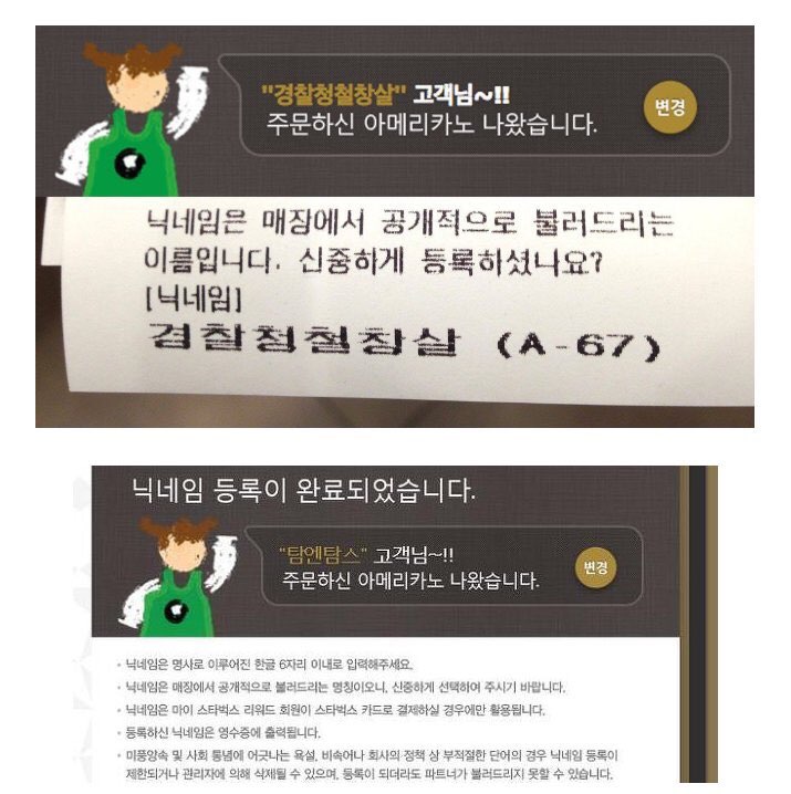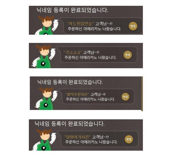 저는 "카페인좋아" 인데 불러줄 수 없는 닉넴이래요.