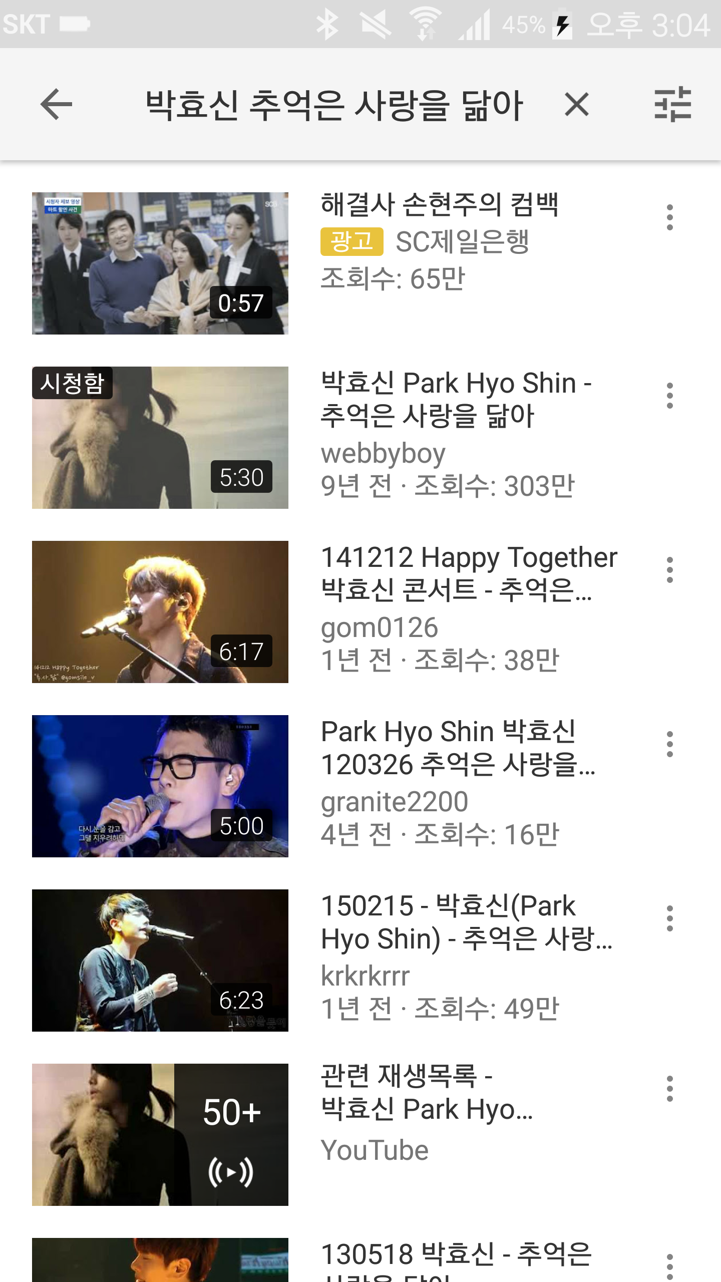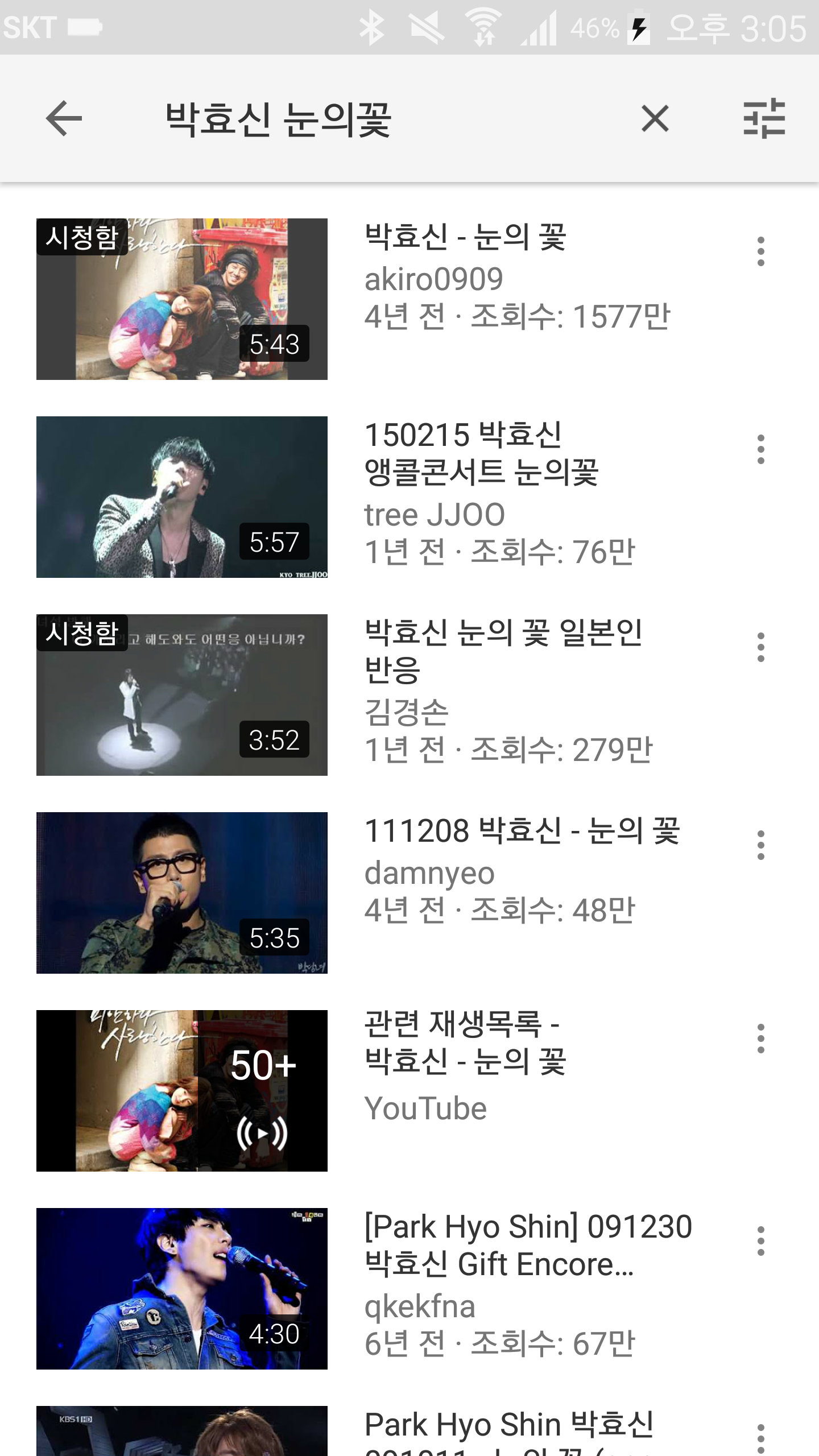 역시 박효신은 눈의꽃이 리즈시절...9년전 업로드 영상보다 4년전 업로드된 영상이 조회수에서 압도해버리네요.