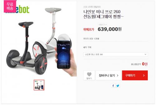 위메프에서 나인봇 미니 프로 260 할인 행사 하네요.