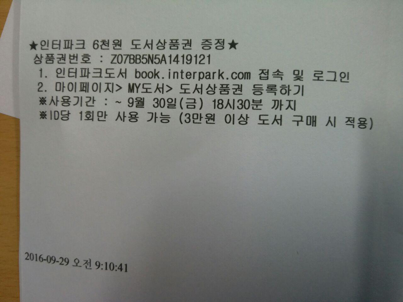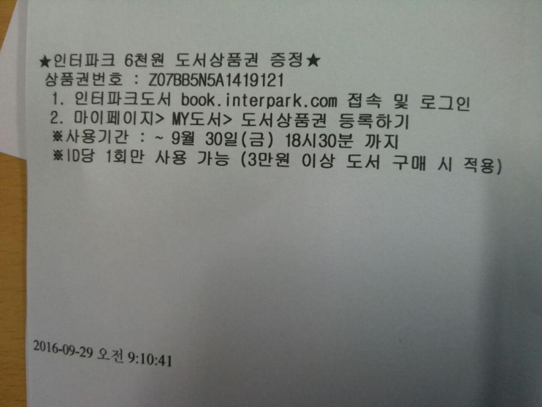 인터파크도서 6천원 할인권 (9/30까지) > 자유게시판