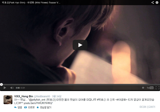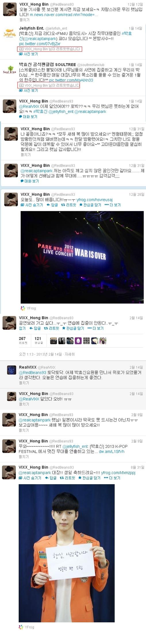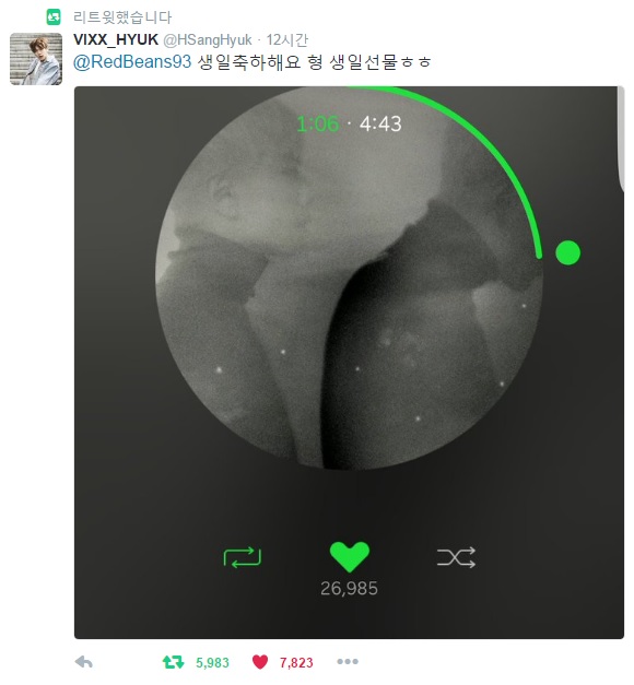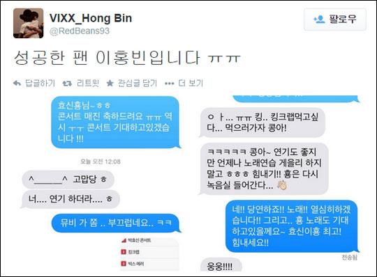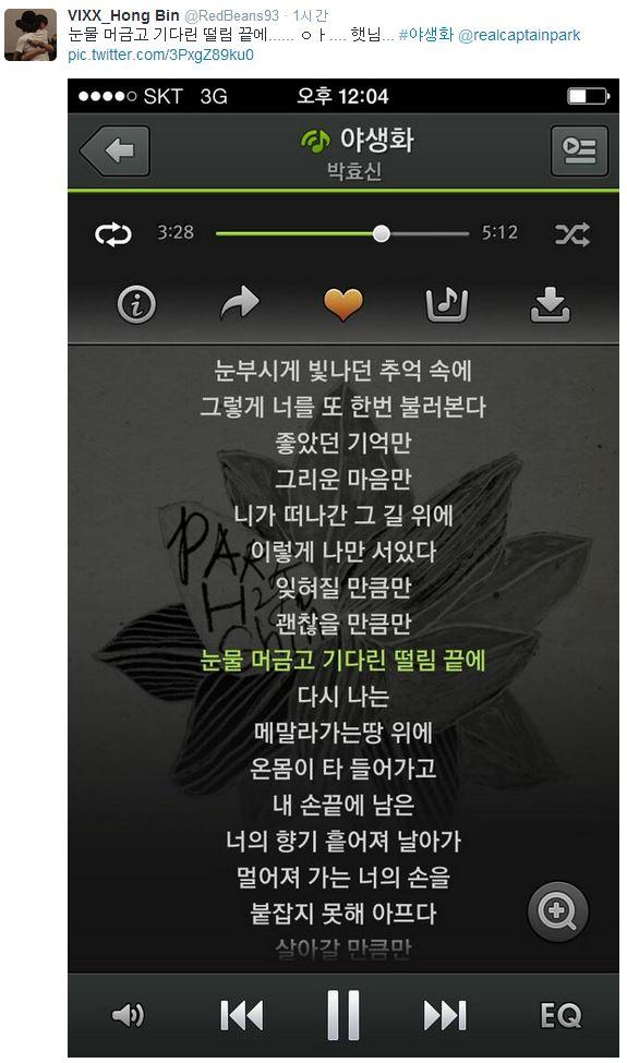 같은 멤버 혁이 홍빈이한테 생일선물이라고 박효신 숨 스밍인증 ㅋㅋ