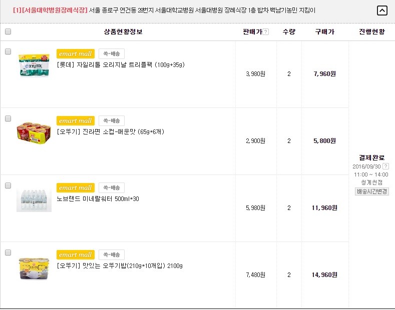 그냥 제걸로 하면되고요 택배기사님 전화오면 '서울대병원 장례식장 1층 백남기농민 지킴이' 로 보내달라고하면 된다고 하네요~ | ||