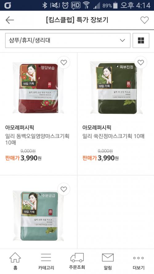 일리 마스크팩 10개 3990원이네요. 어제까지 6000원대였는데 오늘 가격 내렸나봐요. (배송비 2500원 붙어요.) 인터넷 최저가랑 가격 비슷하네요. 얼마전 11번가에서 5천원 쿠폰 소진용으로 사서 써봤는데 나름 괜찮아요. 포인트 소진용으로 정 살 거 없으시면 이것도 괜찮을 듯 해요!!