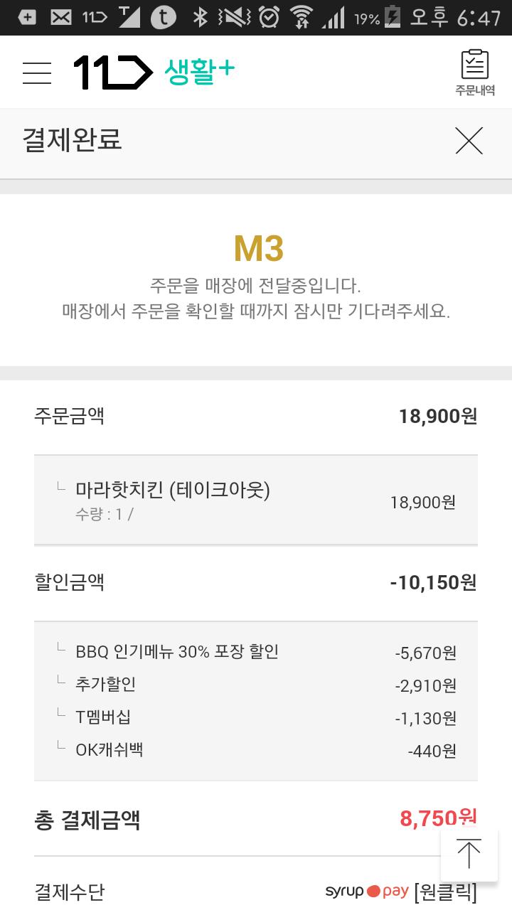 할인은 시럽 30퍼 딜에 11번가 3천원 쿠폰 + t멤버쉽 입니다~