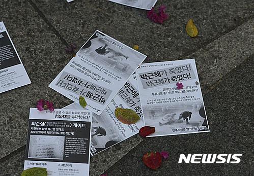 박근혜 정부 규탄 전단지 살포 - 백남기 농민 & 최순실 게이트 > 자유게시판