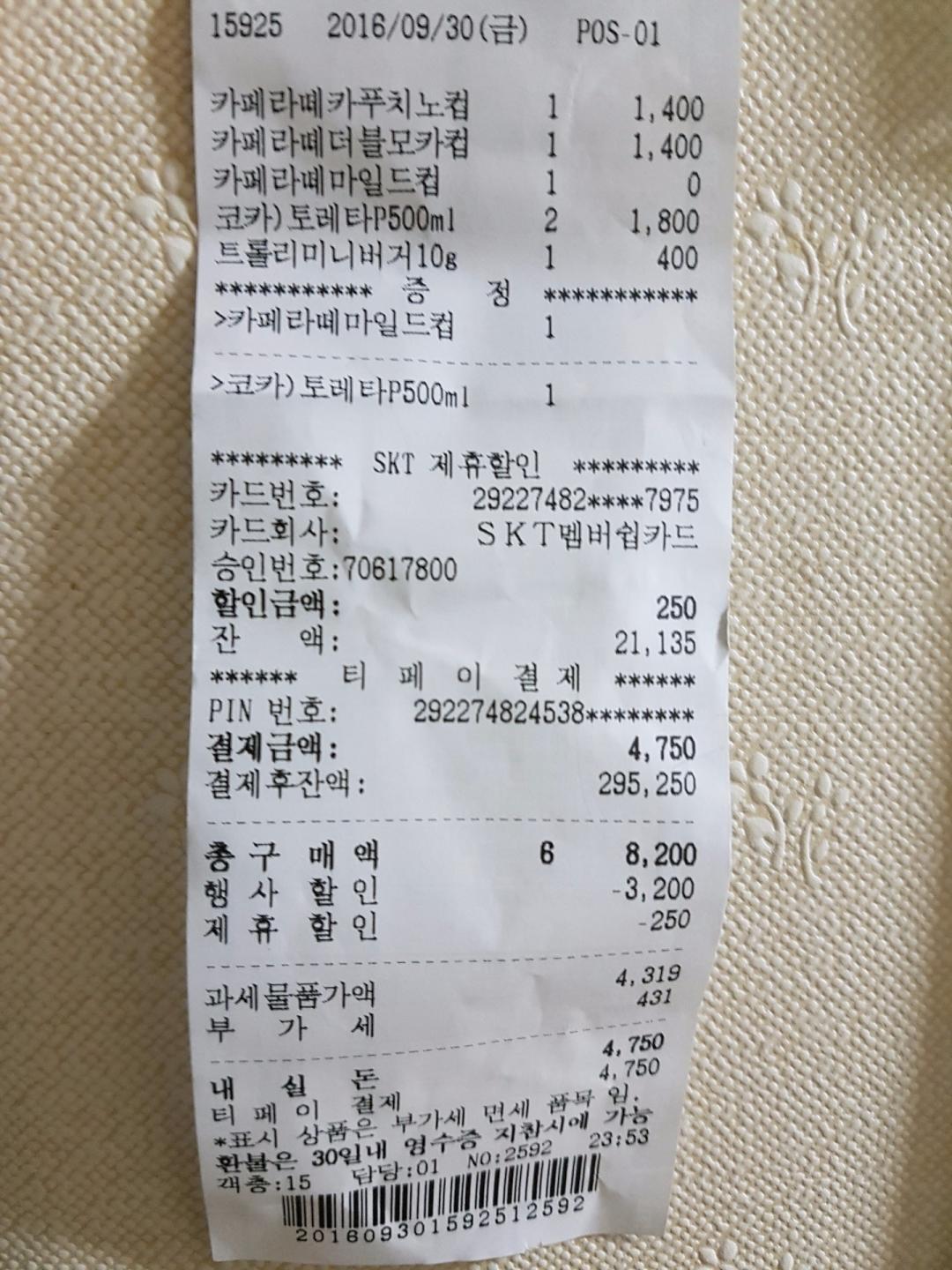 티페이 이벤트 문구에 보면 5,000원 미만 결제시 해당 금액까지만 할인해준다고 하더군요~