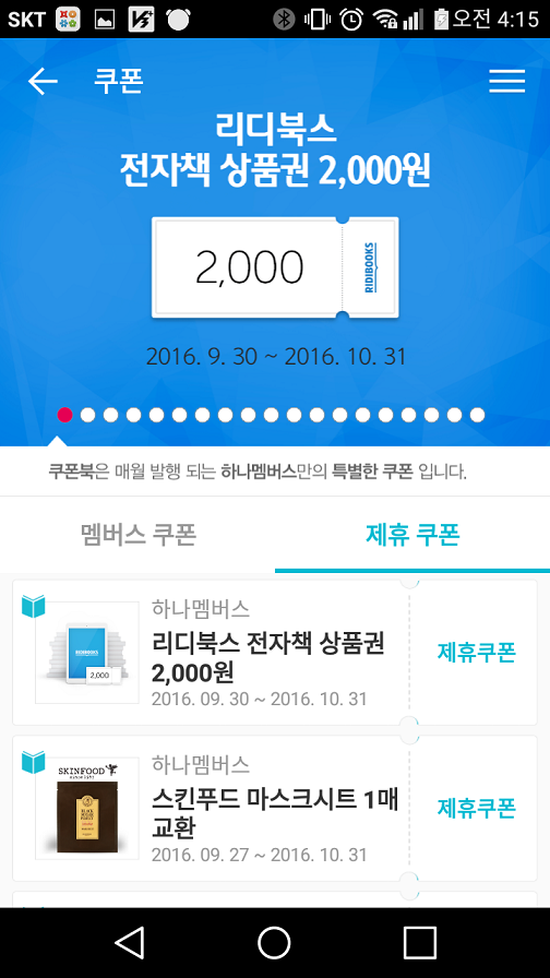 하나멤버스앱 쿠폰란 - 제휴쿠폰란에서 발급 받으시면 되요~