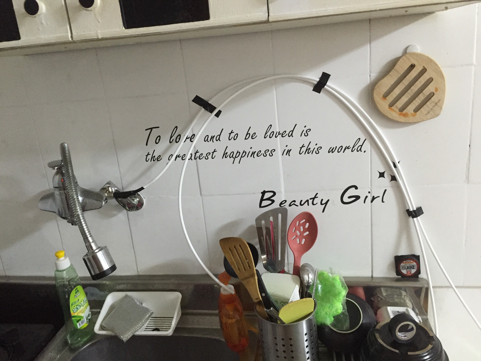 그런데 선을 왜 저렇게 길게 하신거예요? 좀 자르고 싱크대 라인위에 걸쳐 고정하는게 훨씬 깔끔할텐데요. |