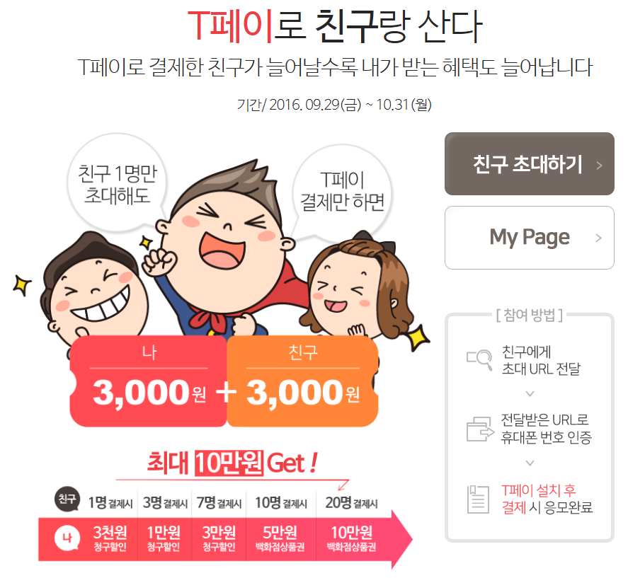 티페이에서 친구를 초대하면 3천원 청구할인 해줍니다.