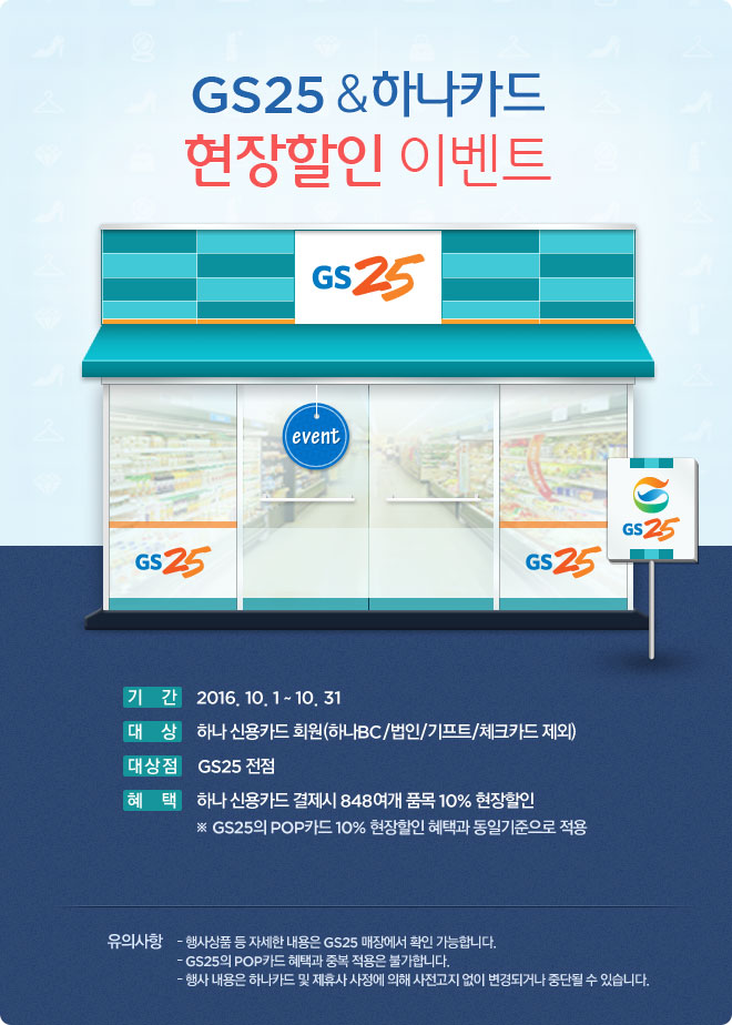 [하나카드] GS25 현장할인 이벤트(~10/31) > 자유게시판