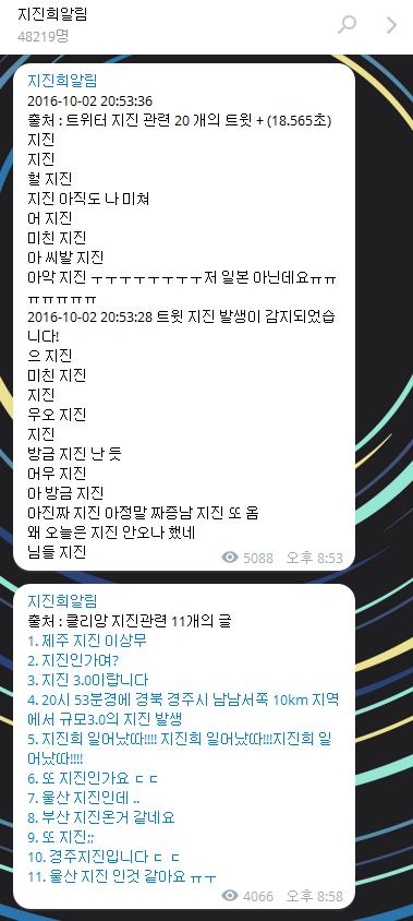 저는 텔레그램 봇 알림받습니다. 부산인데 지진없는데 알림오니 이상하네요