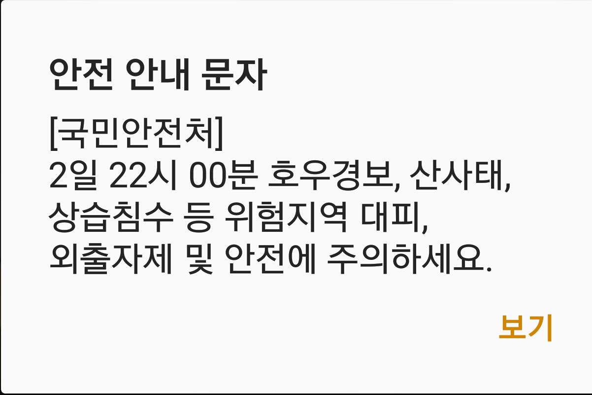 문자받고 밖에 내다보니 우산 쓴 사람이 없네요. 어느 지역에 온다는건지?? | ||