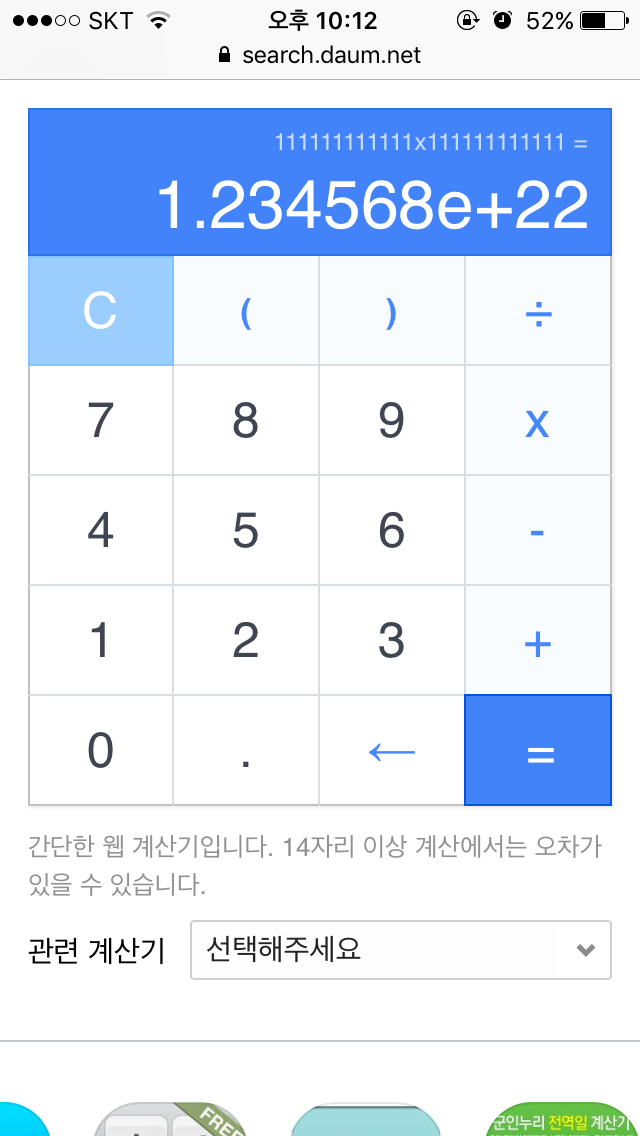 e뒤에 숫자가 10의 제곱수 입니다..1.234568 * 10²² |