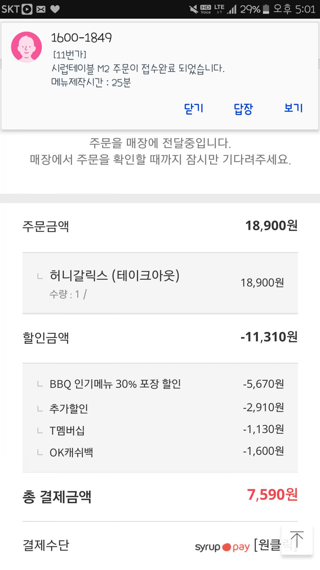 11번가 테이크아웃 할인쿠폰이 있길래 치킨을