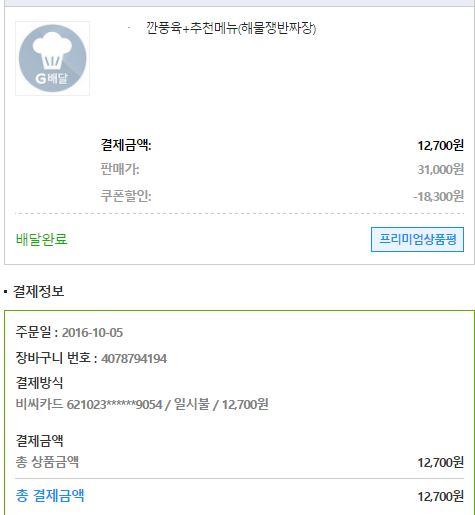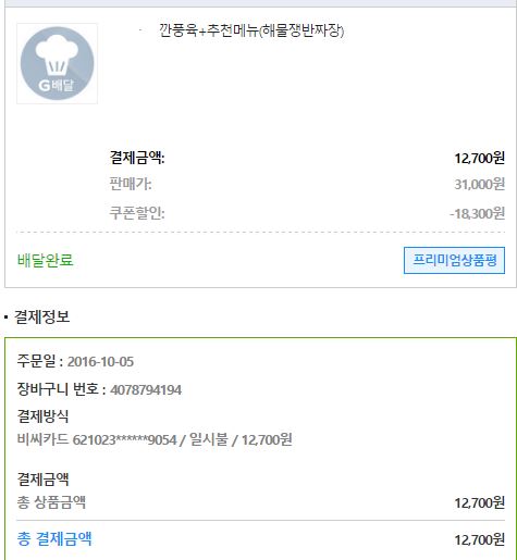 어제 지마켓 30%쿠폰으로 깐풍기 시켜먹었어요