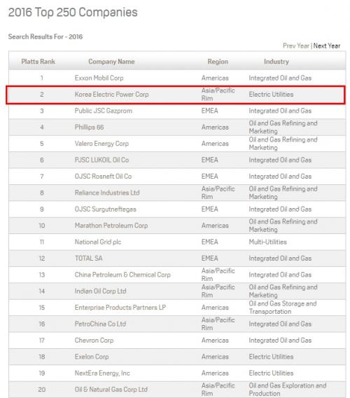 전력 기업중에 3억 인구 시장에서 전력 공급하는 18위,19위의 엑셀론, 넥스트에라 빼고는 전부 석유 관련 기업인데다,