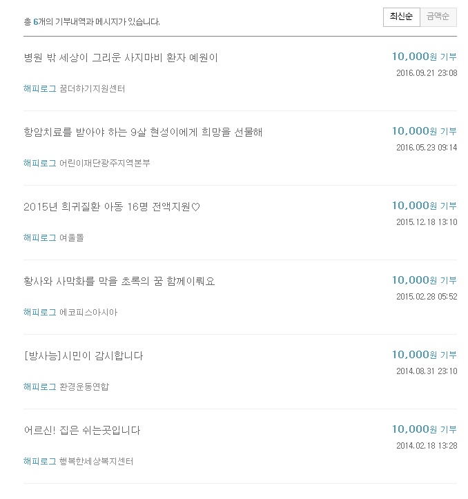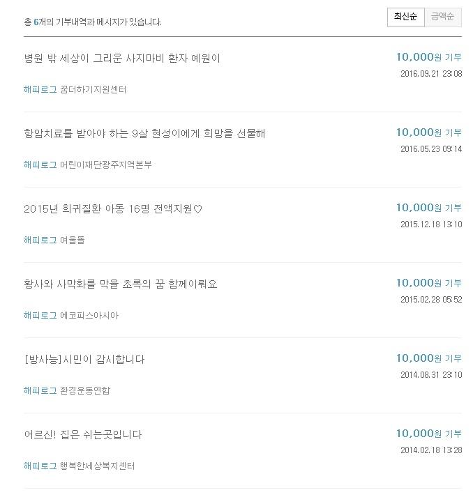 아래는 2년 반동안 기부한 내역입니다.ㅎㅎ