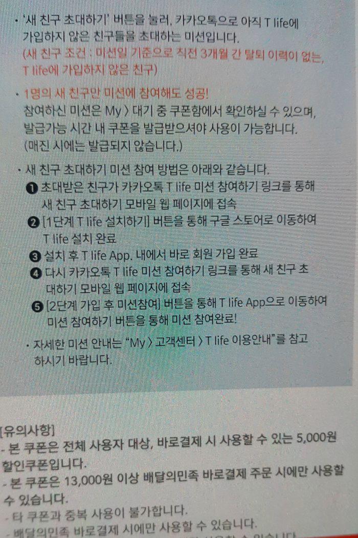 티라이프 신규 가입할 때 추천받아 구매하면 배민 쿠폰도 들어와요 (수정/전카테고리) > 자유게시판