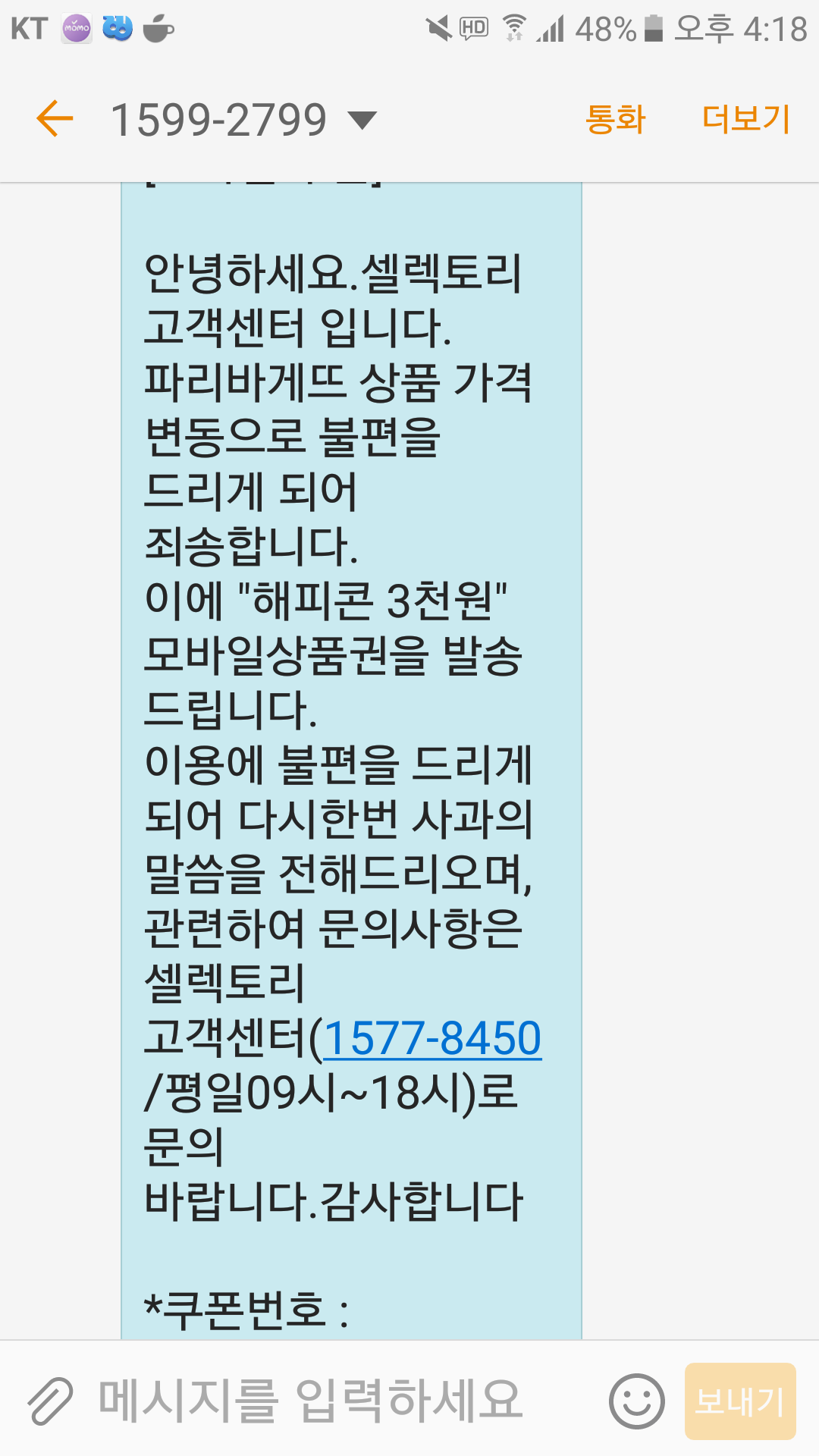 뭔 해피콘3천원을주네요???(셀렉토리)