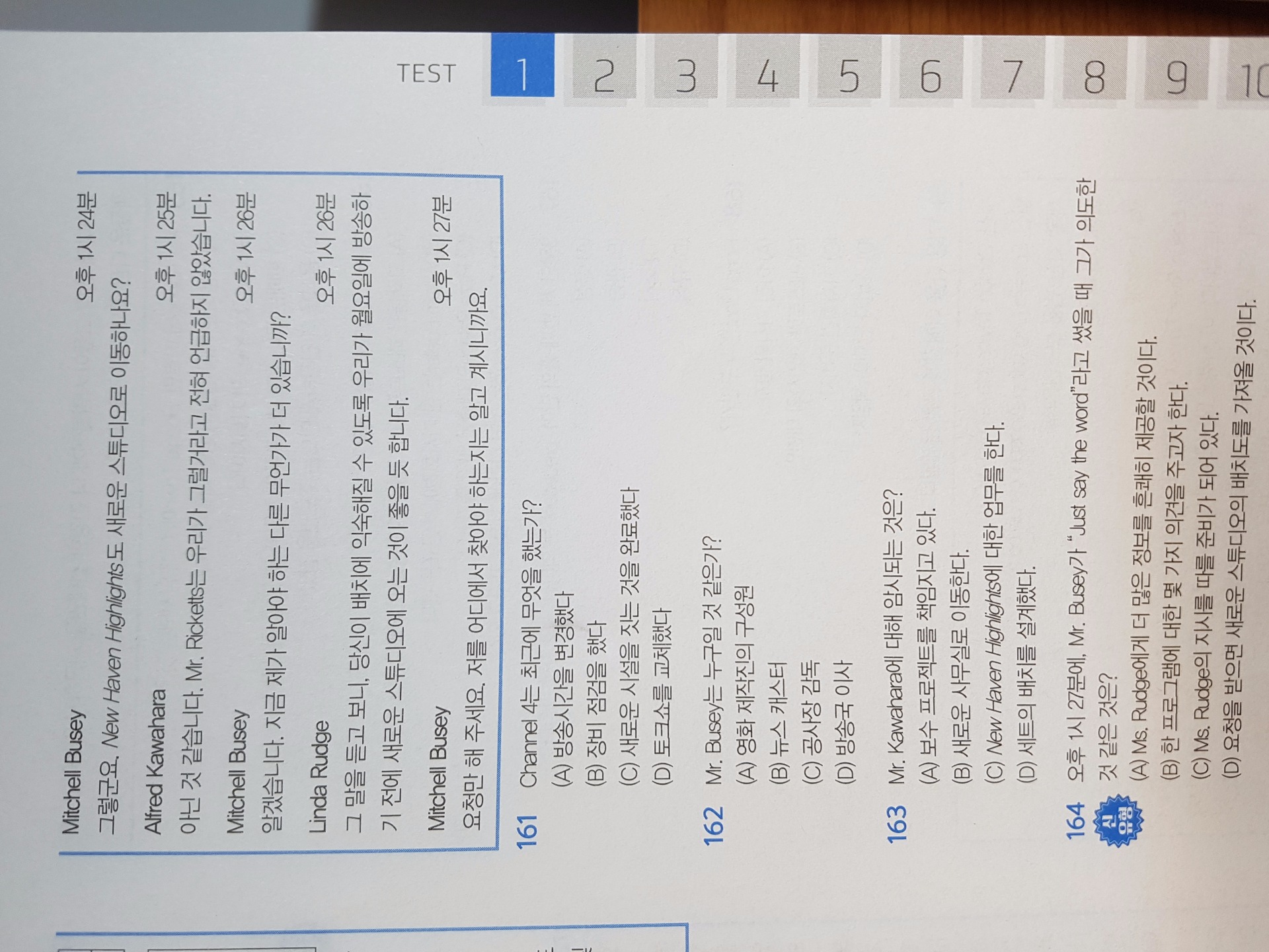 뉴스캐스터죠. 촬영할 예정이라는 말에 제작진으로 착각할 수 있으나, 예전 스튜디오에 있어야한다와 새 스튜디오에 뉴스시간에 오라는 걸로 보면 뉴스캐스터죠..만약 카메라맨이 보기에 있었다면 답이 될 수도 있겠지만요 |