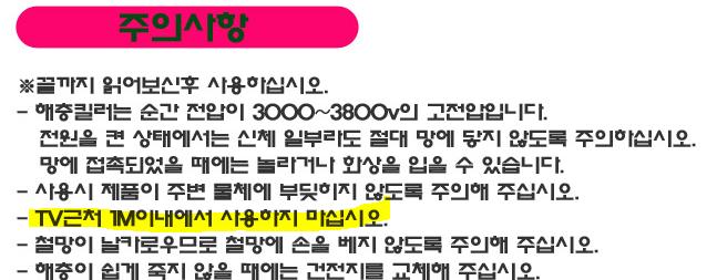 전기모기채 사용시 TV근처에서는 주의하세요.