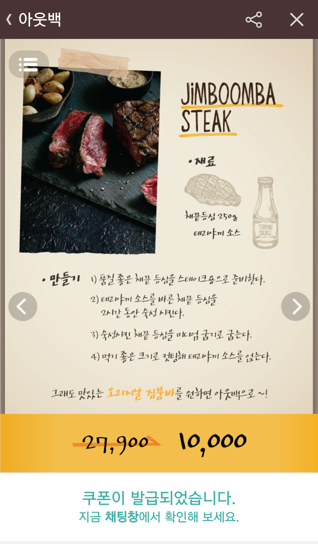 그러고보니 ok캐쉬백 아웃백 할인권 끝났나보네요
