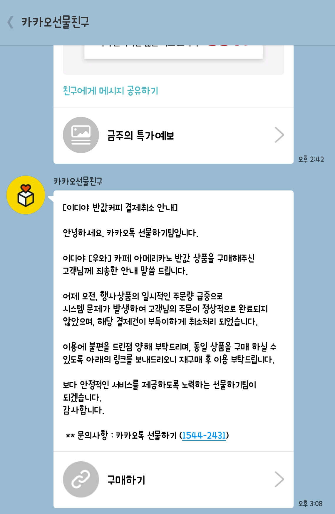 카카오톡 우와한 반값 이디야 50% 다시 구매 했네요.. > 자유게시판