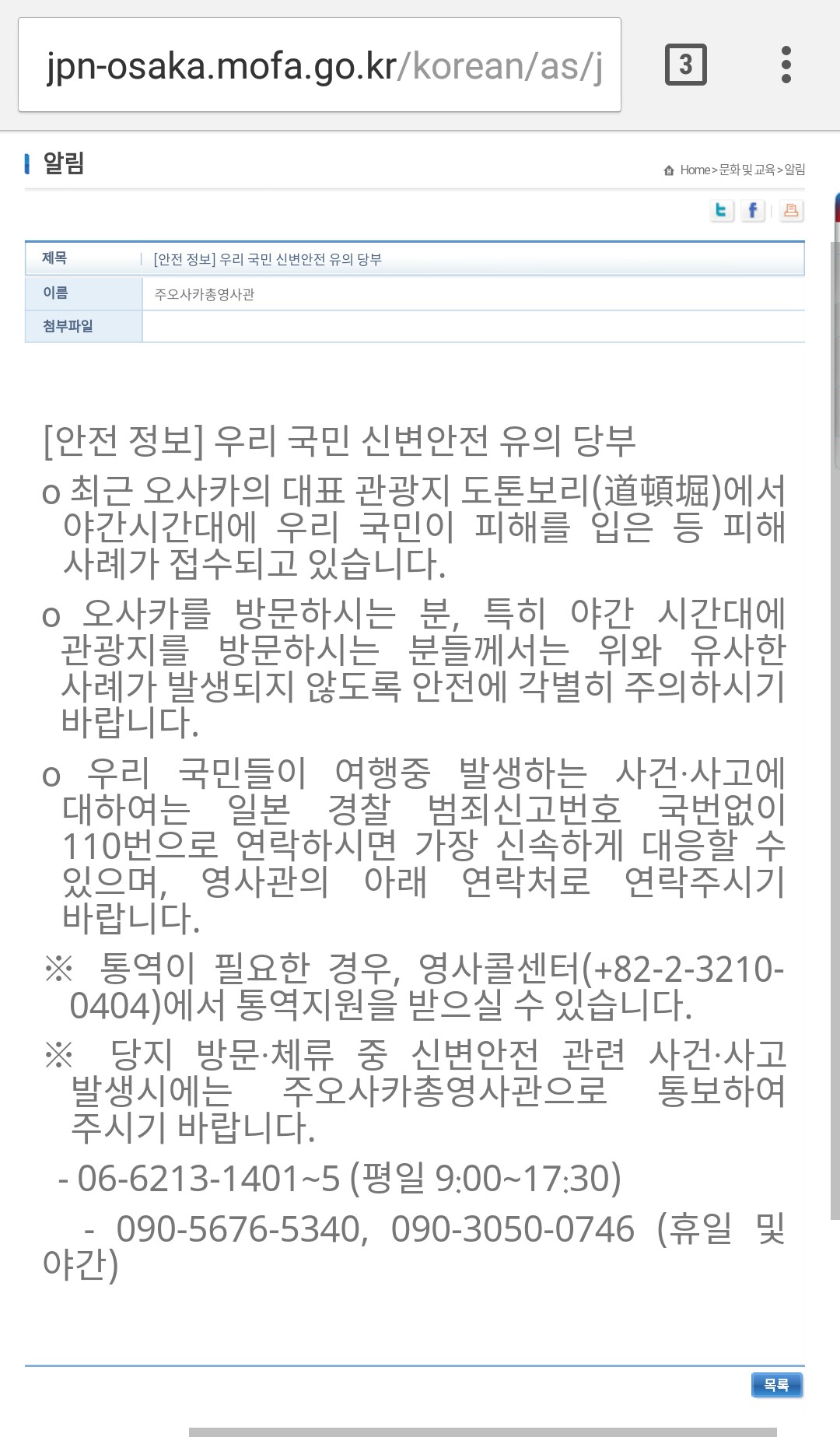 아예 오사카 영사관 홈페이지에