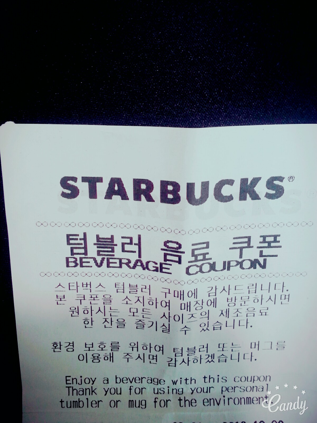 텀블러 쿠폰은 벤티 사이즈로 무료에요~