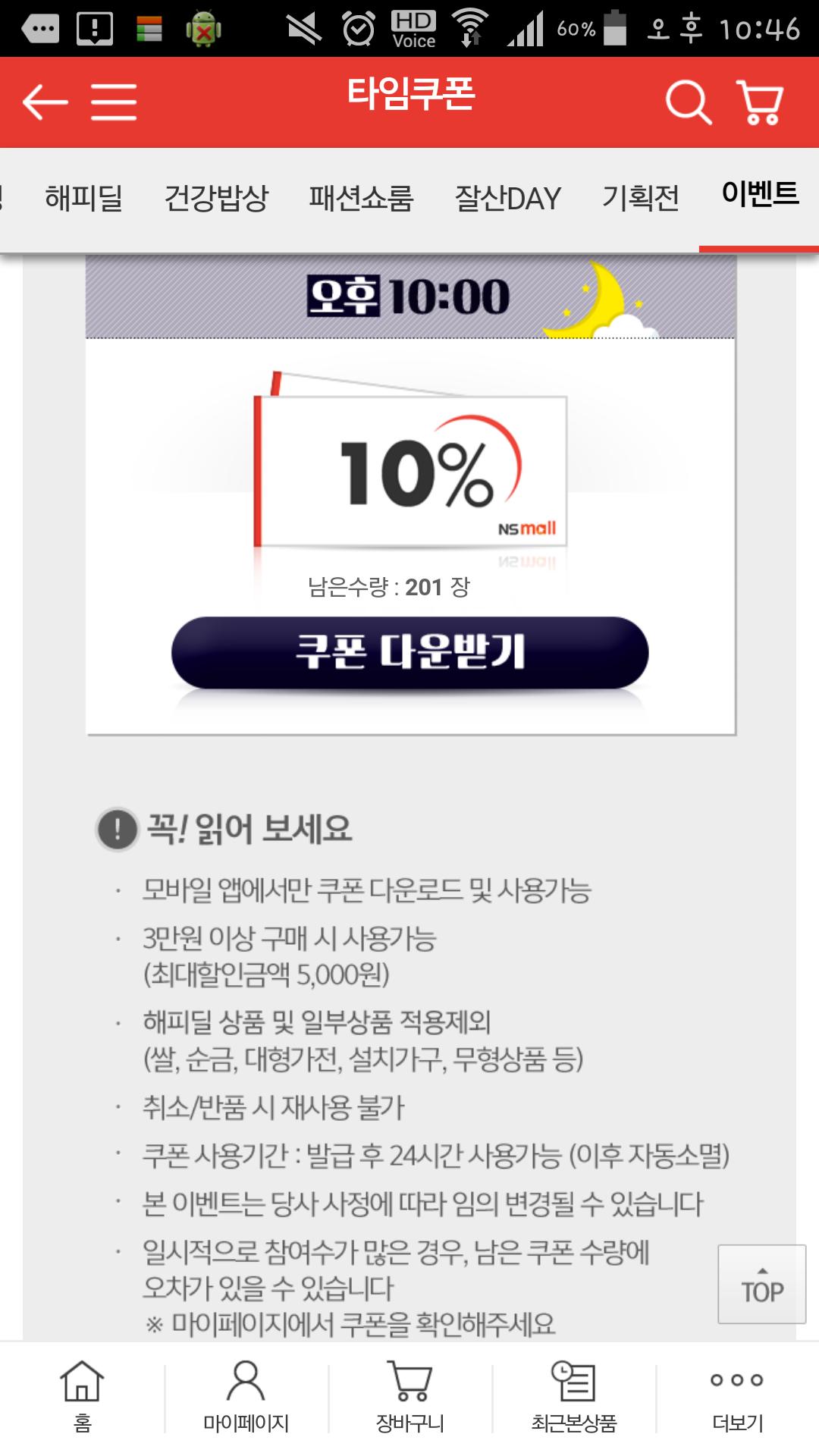 NS홈쇼핑 10%쿠폰