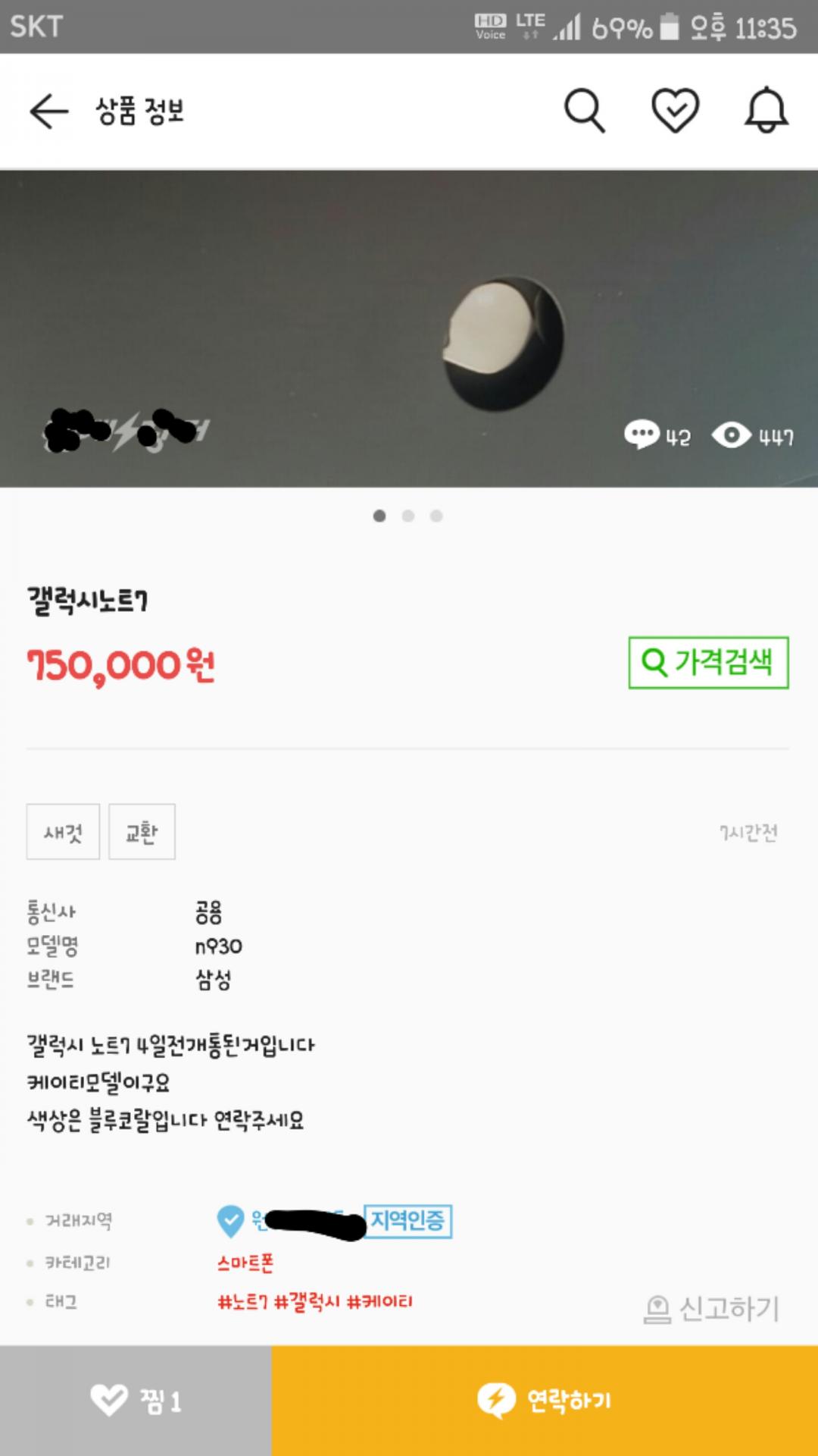 노트7 중고로파네요.
