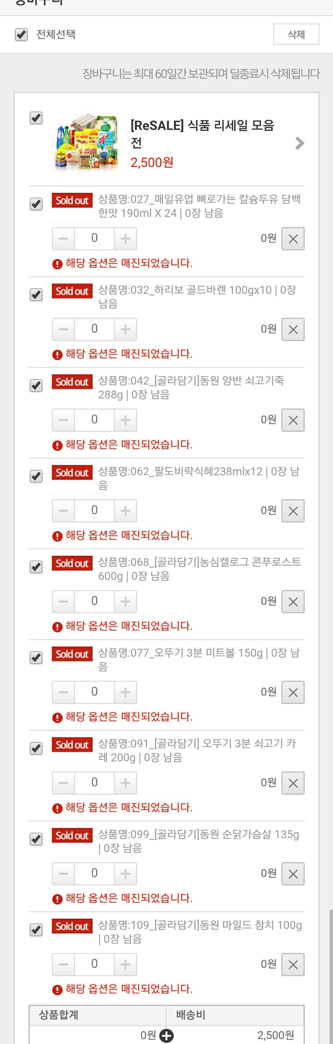 장바구니 담아서 구매하려고 보니