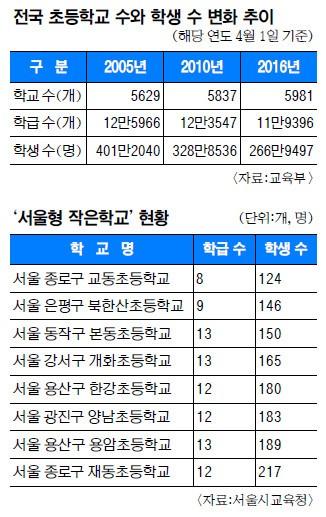 *전국 초등 학생수 2005년 401만에서 2015년 266만 명으로 급감...▼표