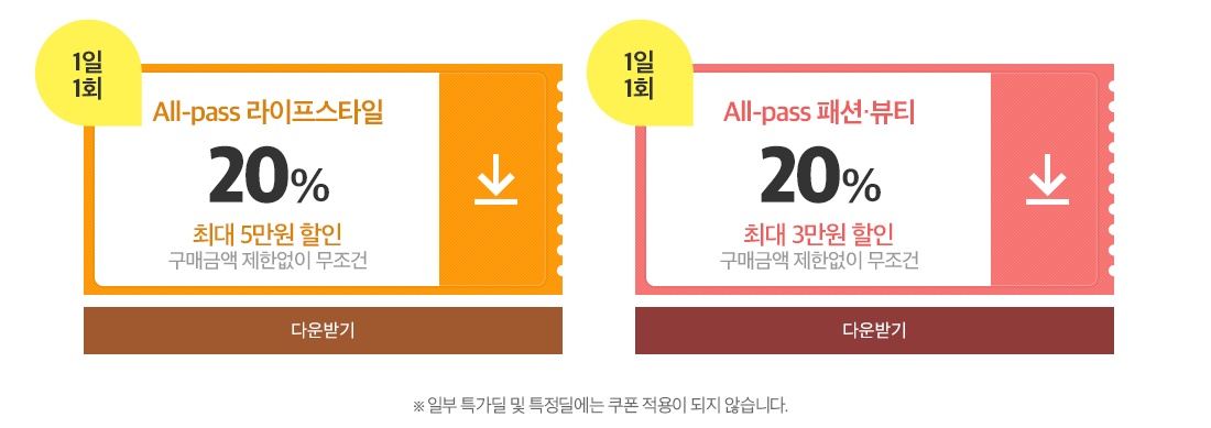 2종류쿠폰 20프로 할인하구요 10월17일까지 매일 1번씩 받아지는것같아요
