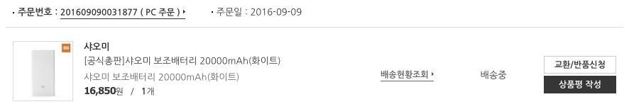 1달전에 산 샤오미 배터리가 배송시작을 했네요 > 자유게시판