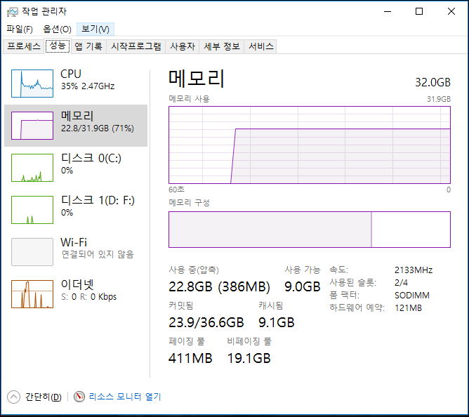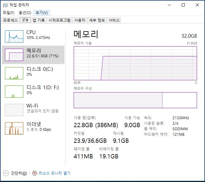 메모리 점유율 왜 이렇게 높을까요?