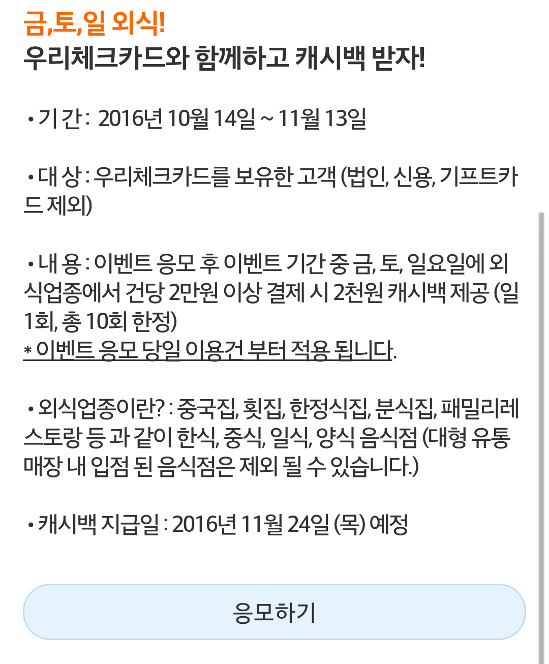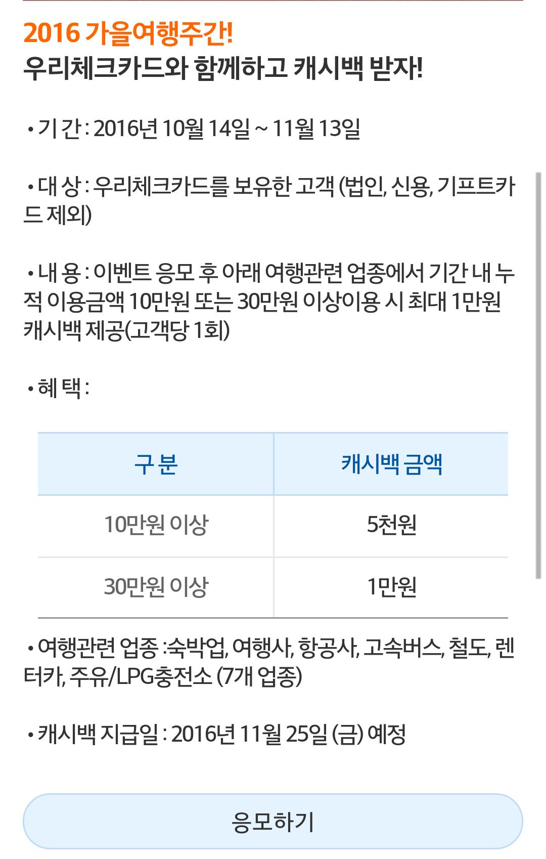 우리체크카드도 이벤트 하네요.