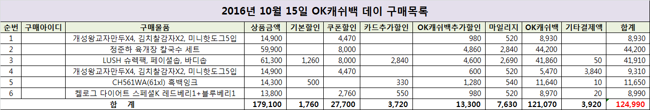 다 더하니 상품금액과 실구매액의 차가 어마어마하네욯ㅎ |