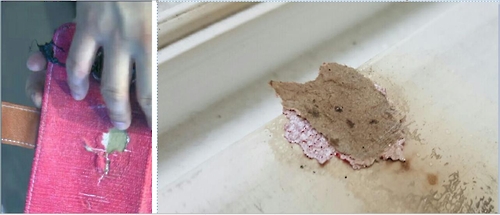 창틀표면에 녹아붙어서 집어올릴 때 떨어진 자국이라고 합니다.