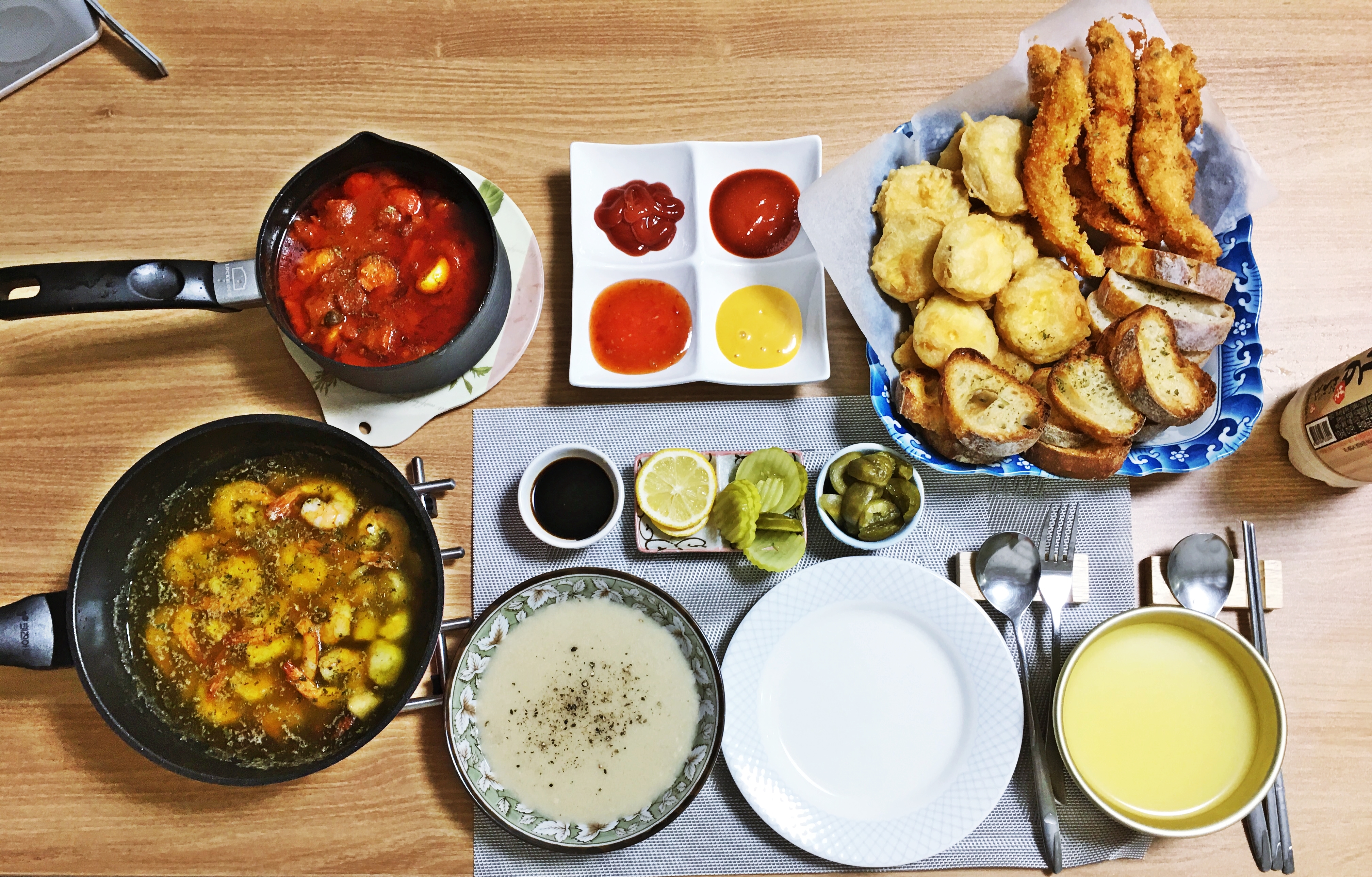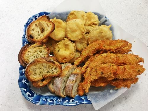 고구마튀김 / 통새우튀김 / 까수엘라와 곁들여먹을 바게트