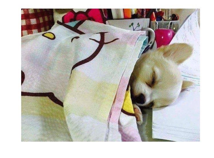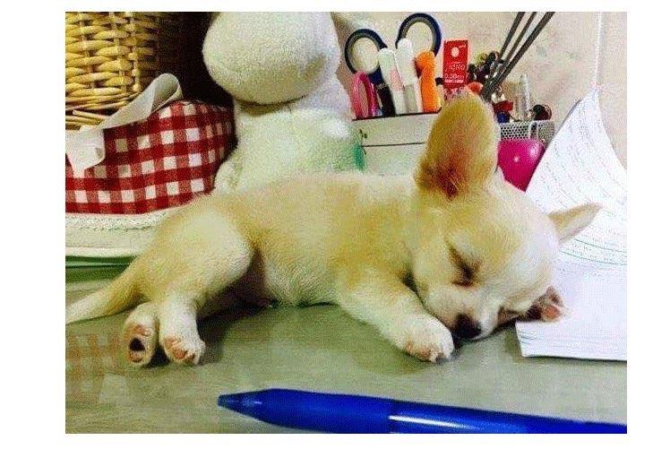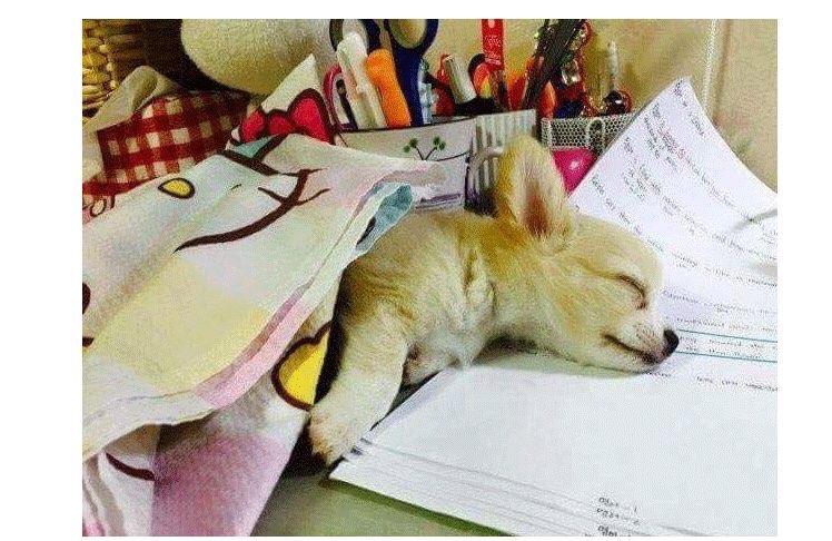 공부하는 주인 방해하다 잠든 강아지