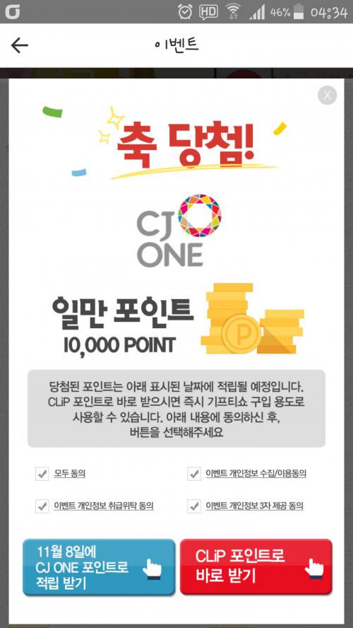 CJ 포인트 당첨!