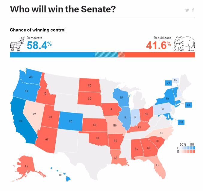 전에도 설명했듯이 미국 상원은 6년 임기이고 2년마다 1/3을 교체하는데 하필이면 올해에 공화당 의석이 대거 대상이 되었습니다.