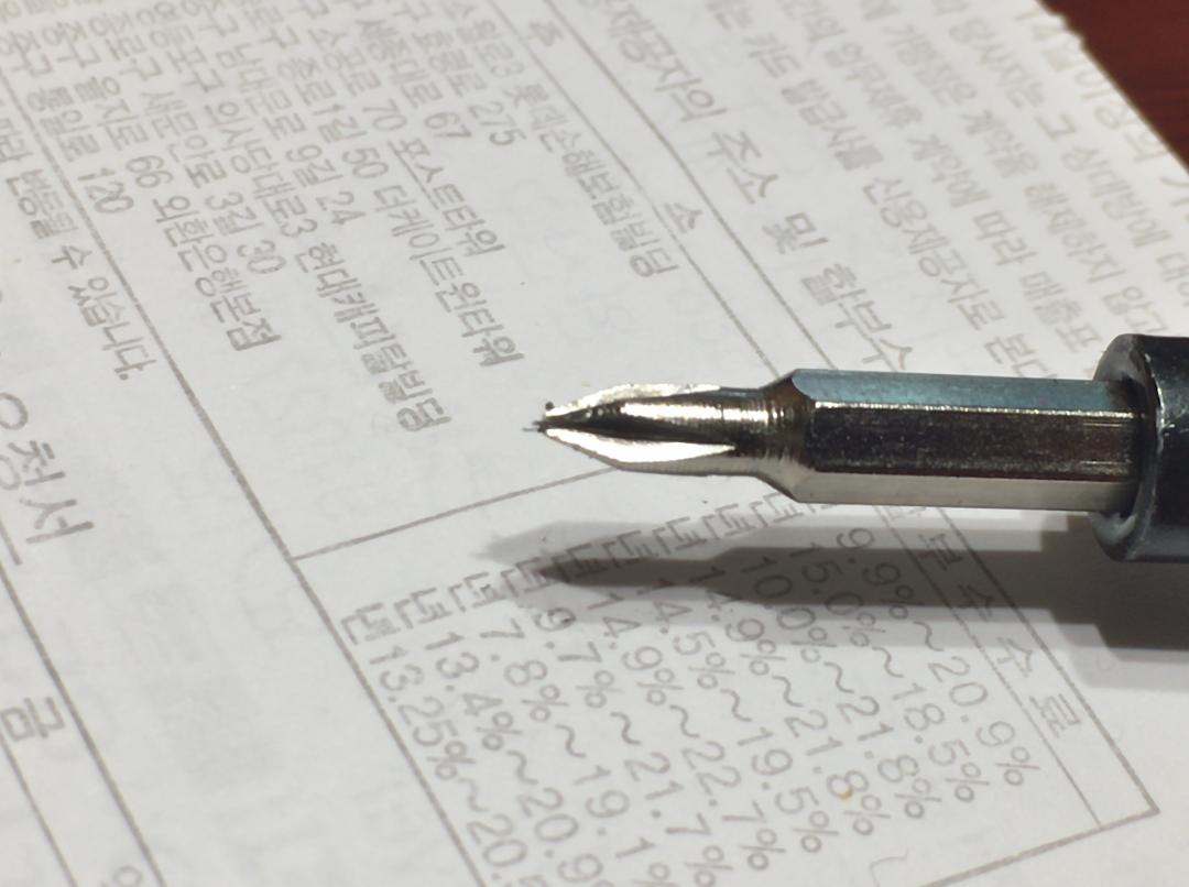 저도 노트북 뒷판 열려고 다이소에서 천원짜리 시계 드라이버 샀는데 뒷판도 못열고 드라이버도 고장나고 심지어 나사가 마모되서 집에서는 아예 못열게 됐었더라는... |