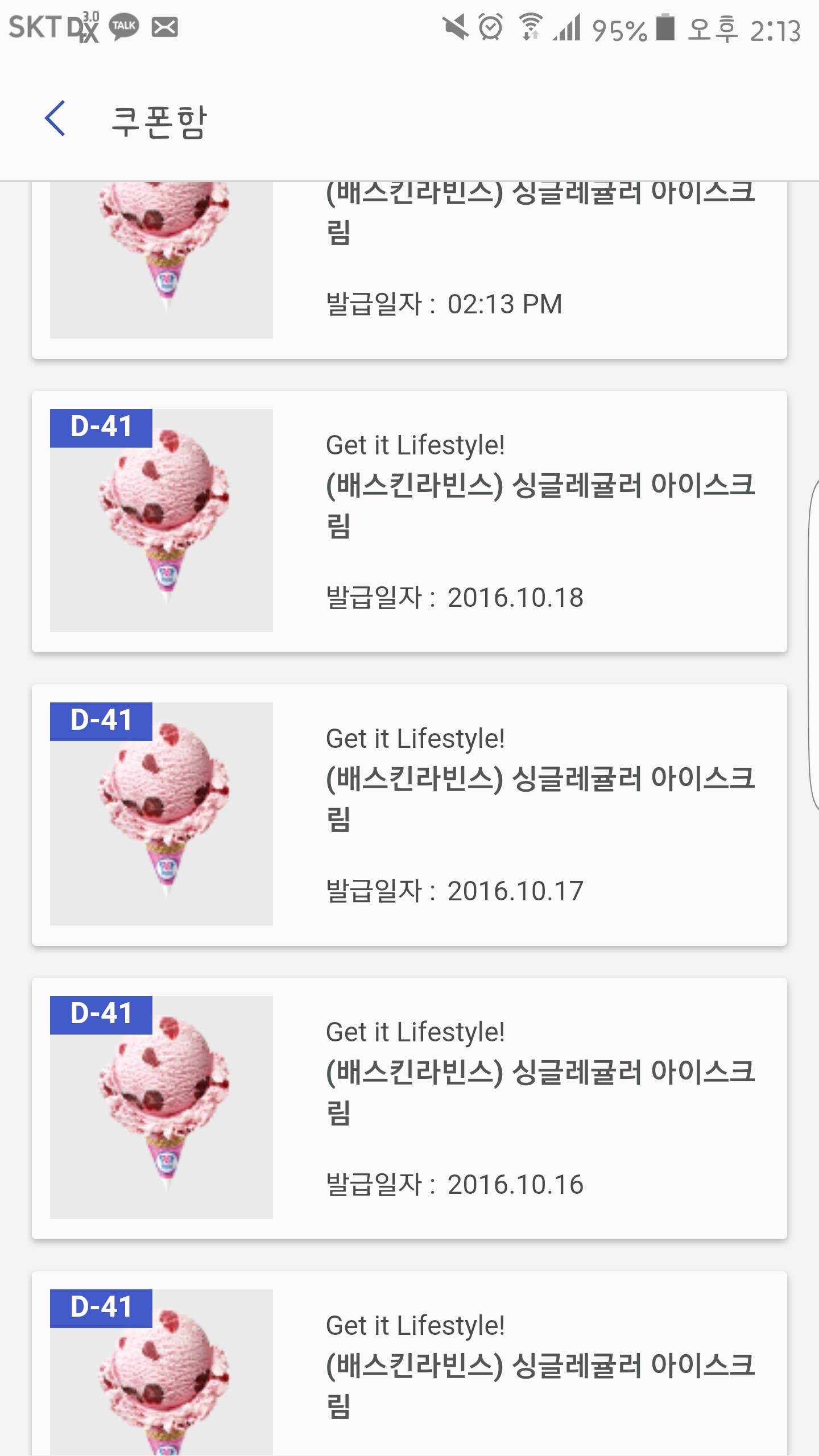 베스킨라빈스에 하루에 한번씩 가서 바꿔먹으면