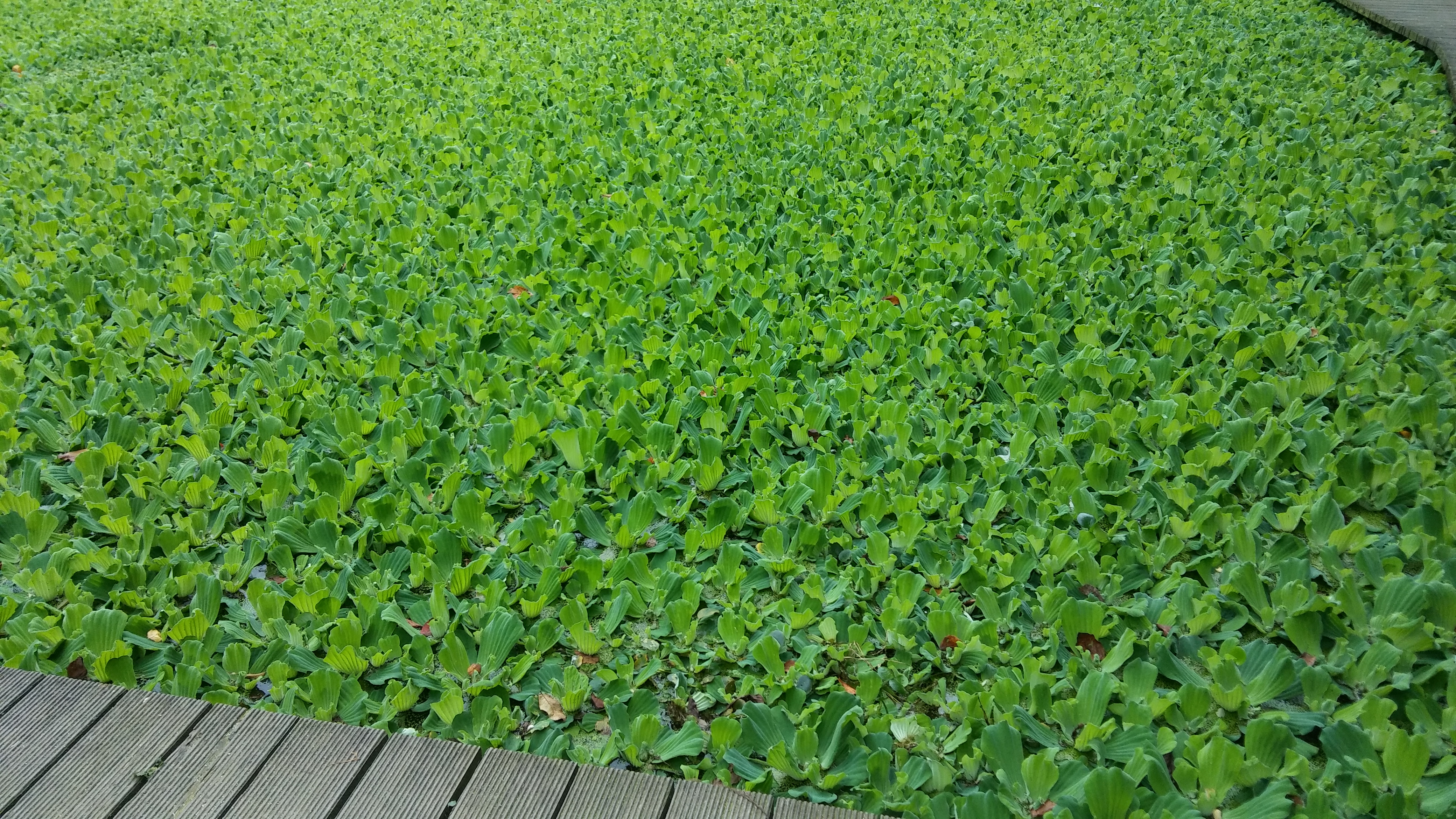 흔히 물배추라고도 불리는 워터래터스가 뒤덮은 연못입니다.