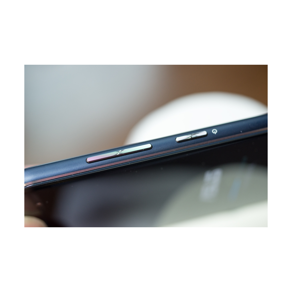 우 측에는 전원 버튼과 볼륨 버튼이 있습니다.
