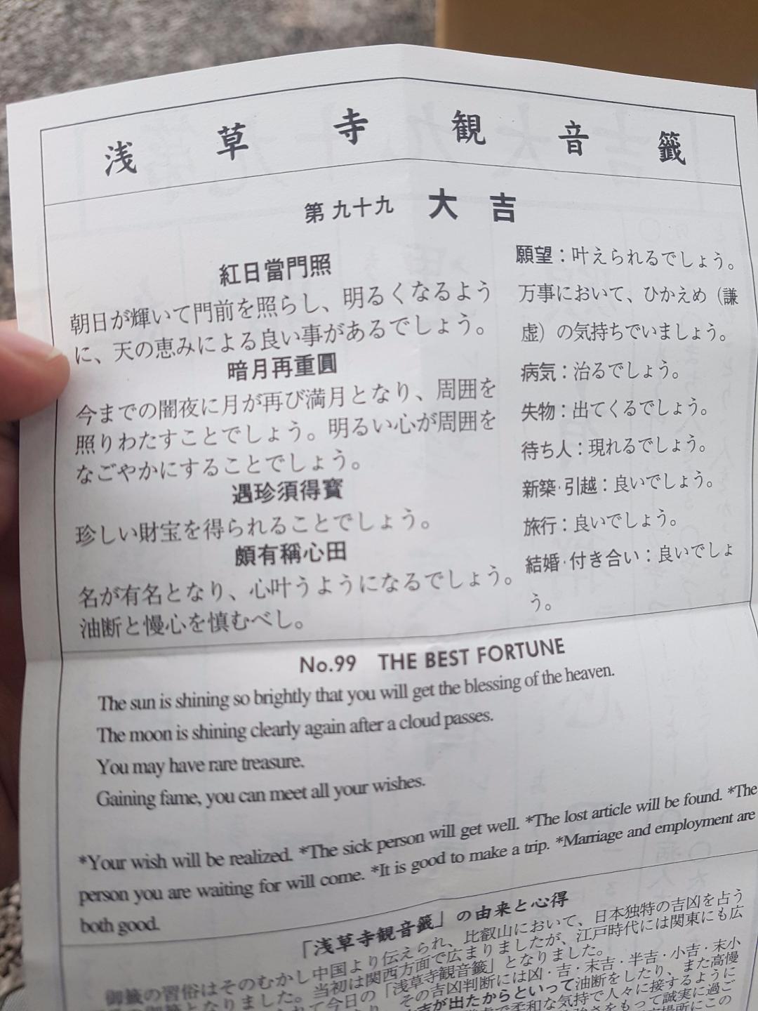 도쿄 센소지 신사서 운세 뽑기 했는데 대길 나왔어요